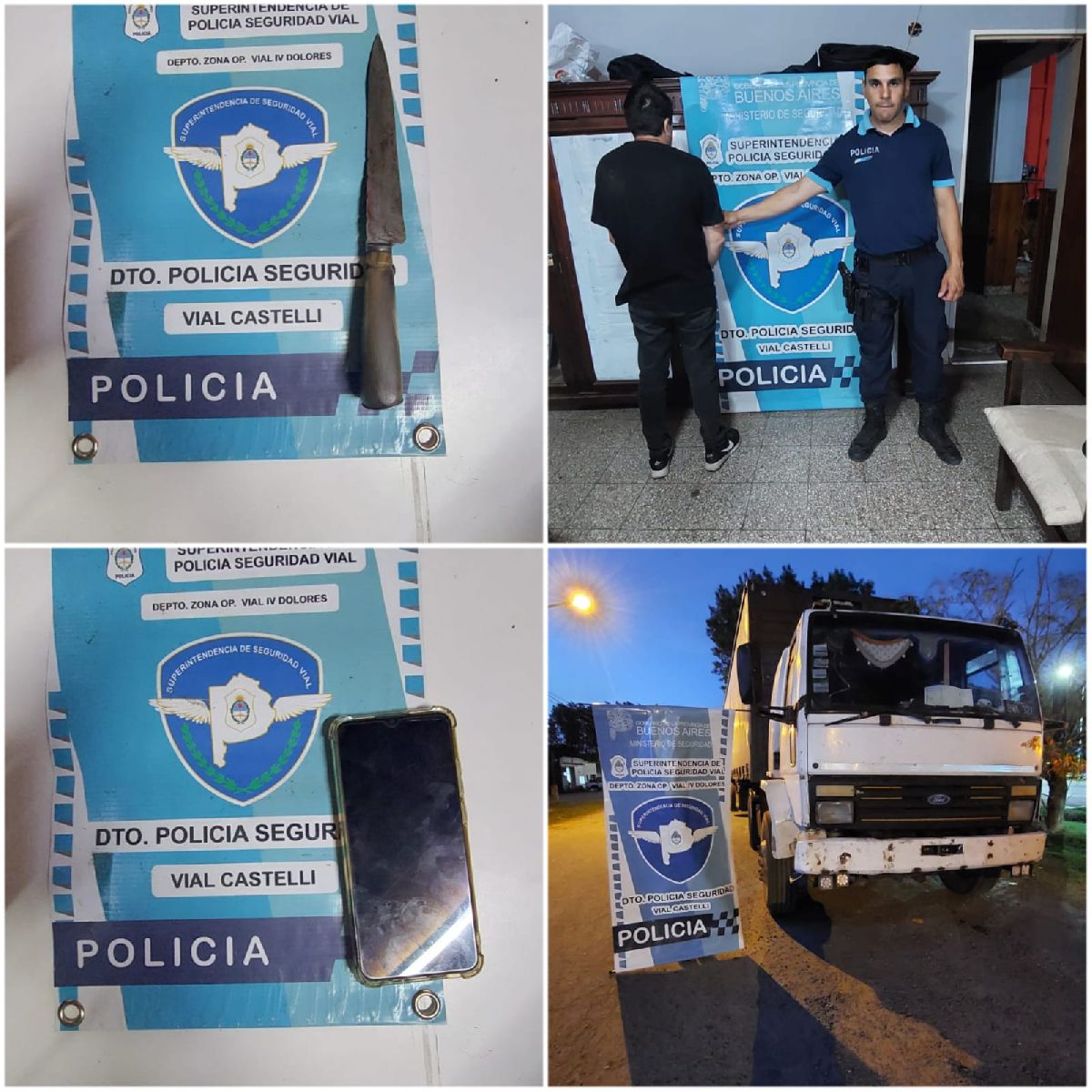 En el operativo se secuestró el camión Ford, un celular Samsung y una cuchilla plateada de 15cm.