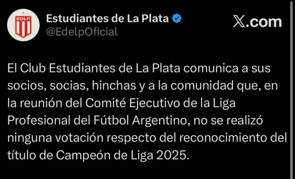 Rosario Central, por su parte, realizó una publicación en sus redes sociales destacando el “logro”: “¡Central campeón de la Liga 2025!¡Somos el mejor equipo del año!”.